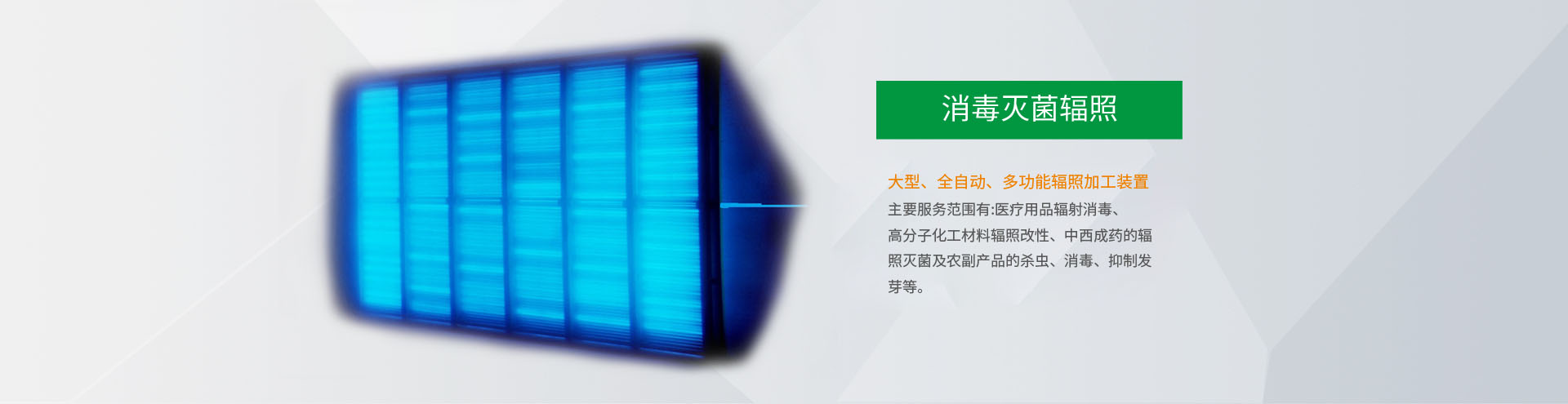 公司座落在南昌市小藍經濟開發區,是從事輻照技術加工服務的現代化企業.主要服務范圍有:醫療用品輻射消毒、高分子化工材料輻照改性、中西成藥的輻照滅菌及農副產品的殺蟲、消毒、抑制發芽等。本公司首期投資3000萬元建設了一座具有國內領先水平的大型、全自動、多功能輻照加工裝置,此裝置是以鈷-60為能源,設計裝源200萬居里,具有自動化程度高、通用性強...